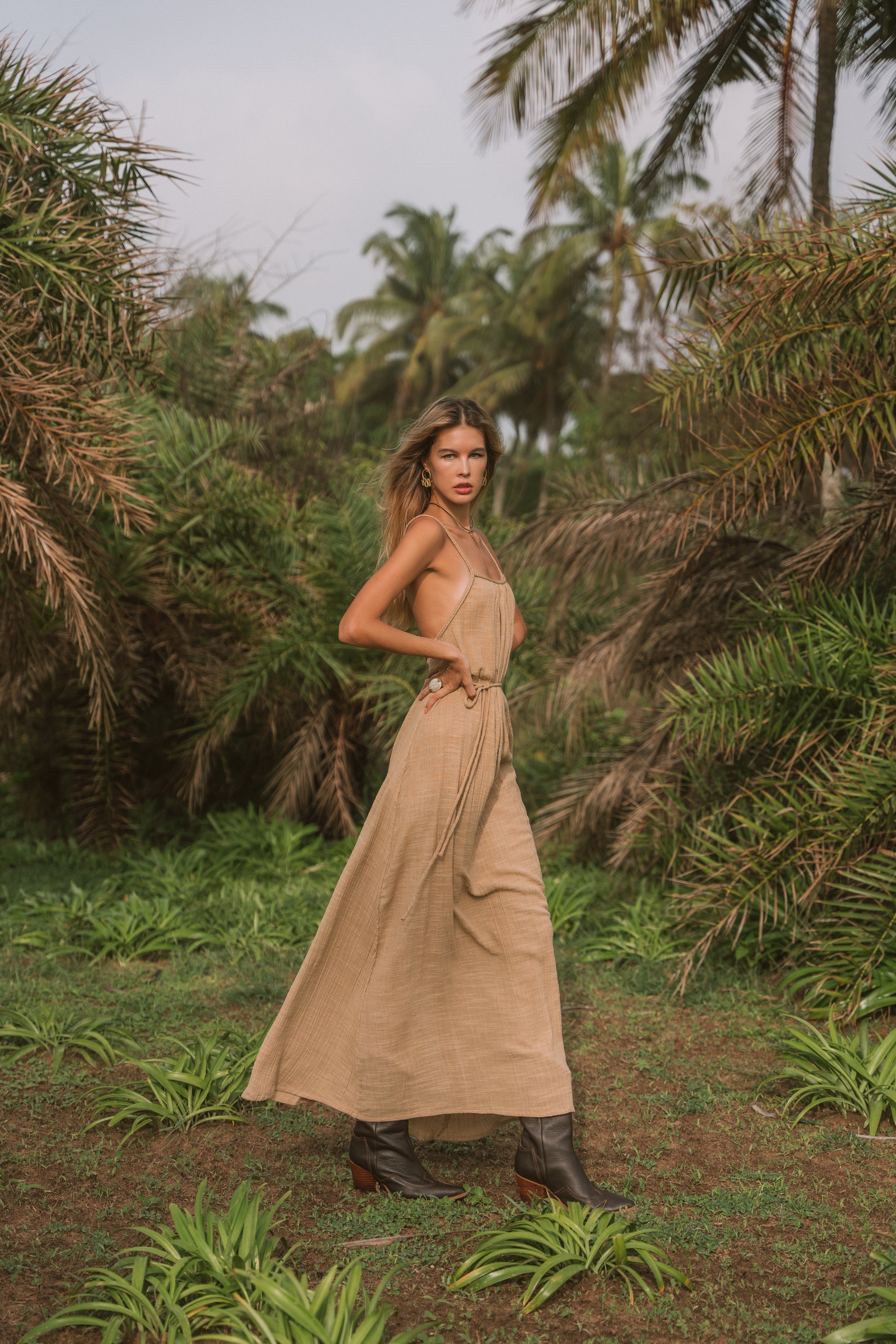 ✧ Style : Inspirée par la nature et l’esthétique minimaliste, cette robe se porte aussi bien pieds nus sur le sable qu’avec des bottines pour un look plus affirmé.