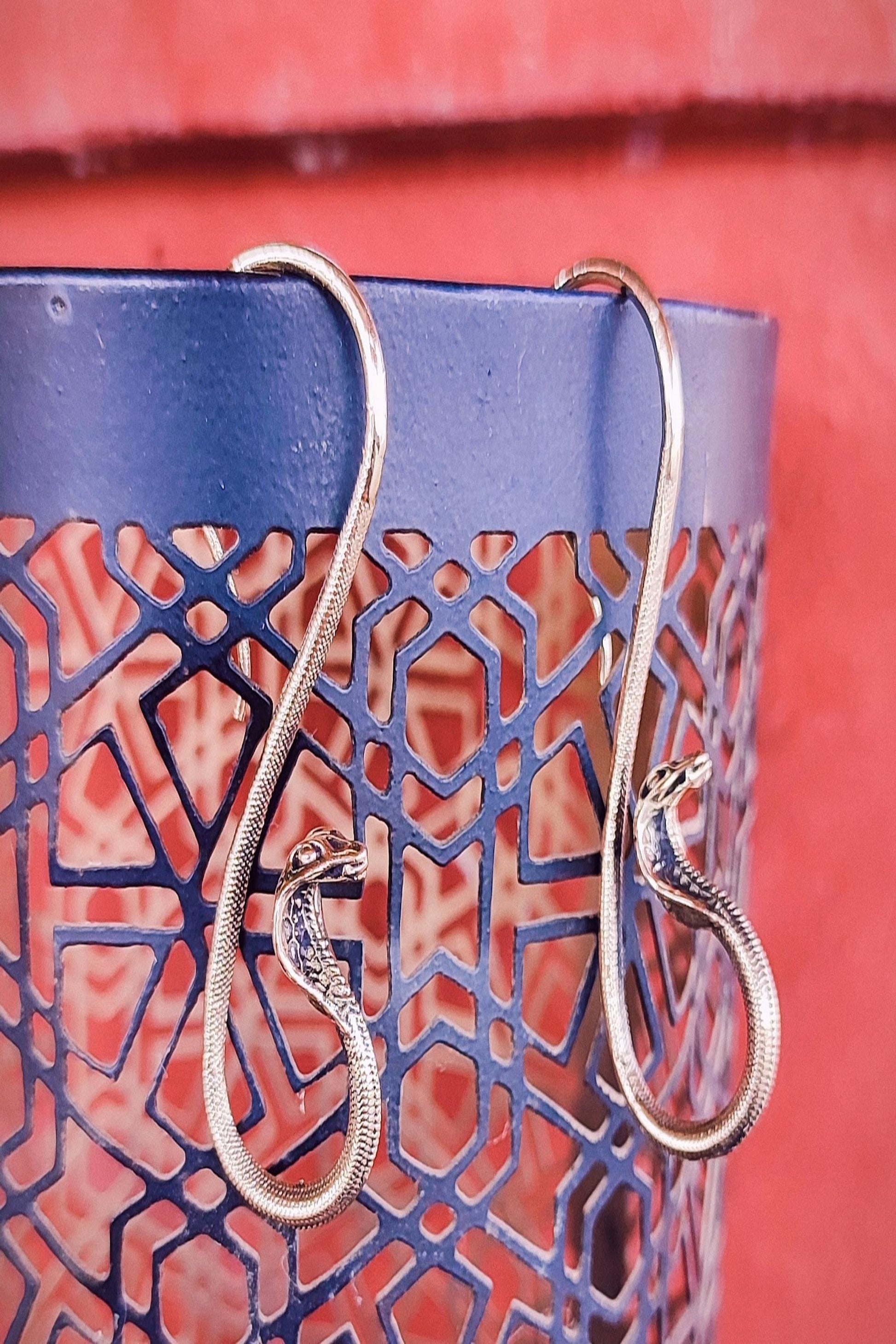 Une belle paire de boucles d'oreilles dorées en forme de serpent cobra.