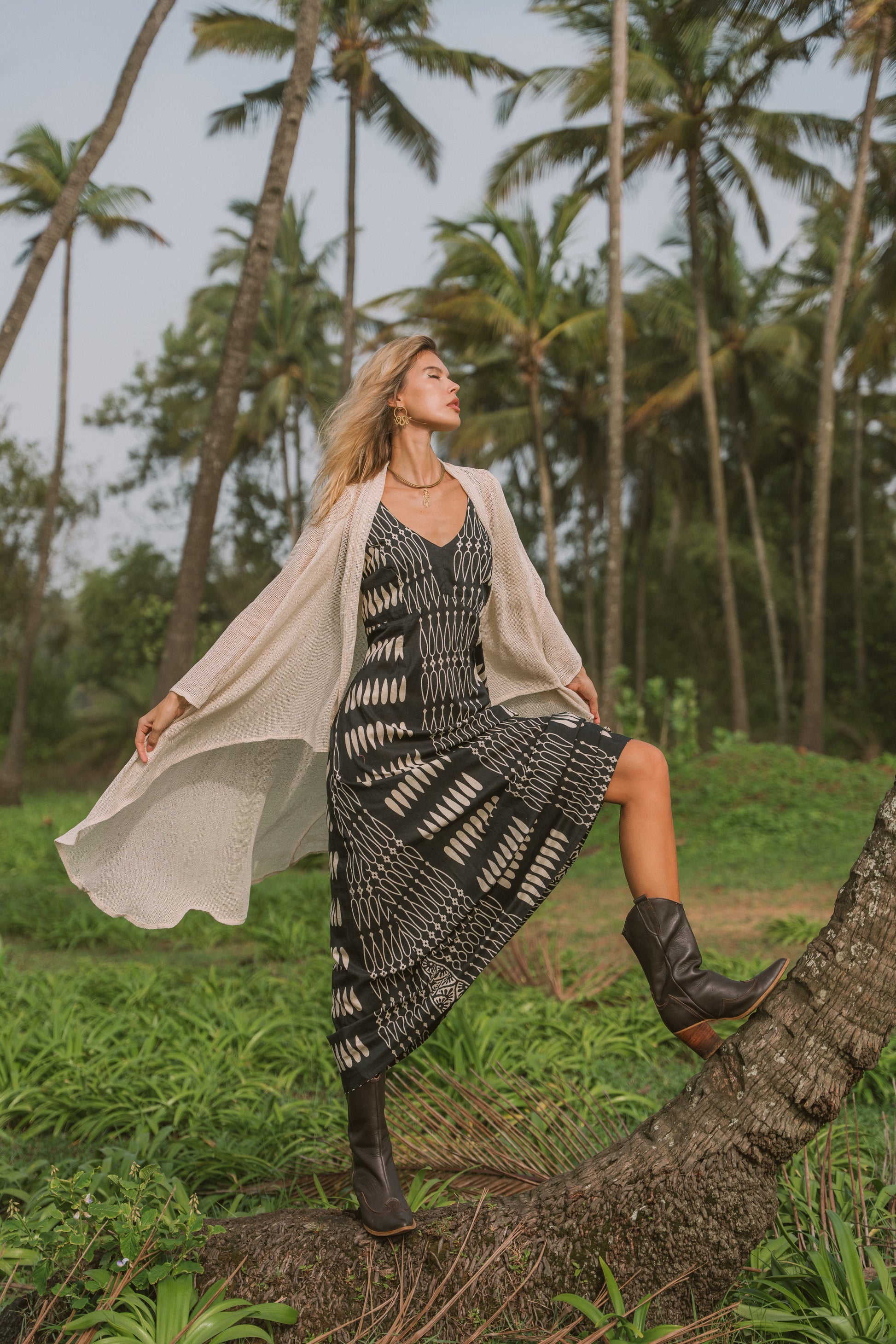 Élégant, fluide et intemporel, ce cardigan kimono long bohème est une pièce signature de la collection SHAKTIWALI. Léger comme une brise tropicale, il accompagne vos journées de voyage, vos retraites, vos festivals ou vos moments de détente en toute féminité.